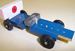 The blue car closely follows deterministic physical behaviors as long as it is stable. Unstable configurations become sensitive to irregularities in the track, the air and the wheel bore interfaces amplifying them through various levers (nose and wheelbase), joints (wheel/body clearance) and around fulcrums (center of mass). All of these effects showed up in the blue average time model and more so in the yellow car model.